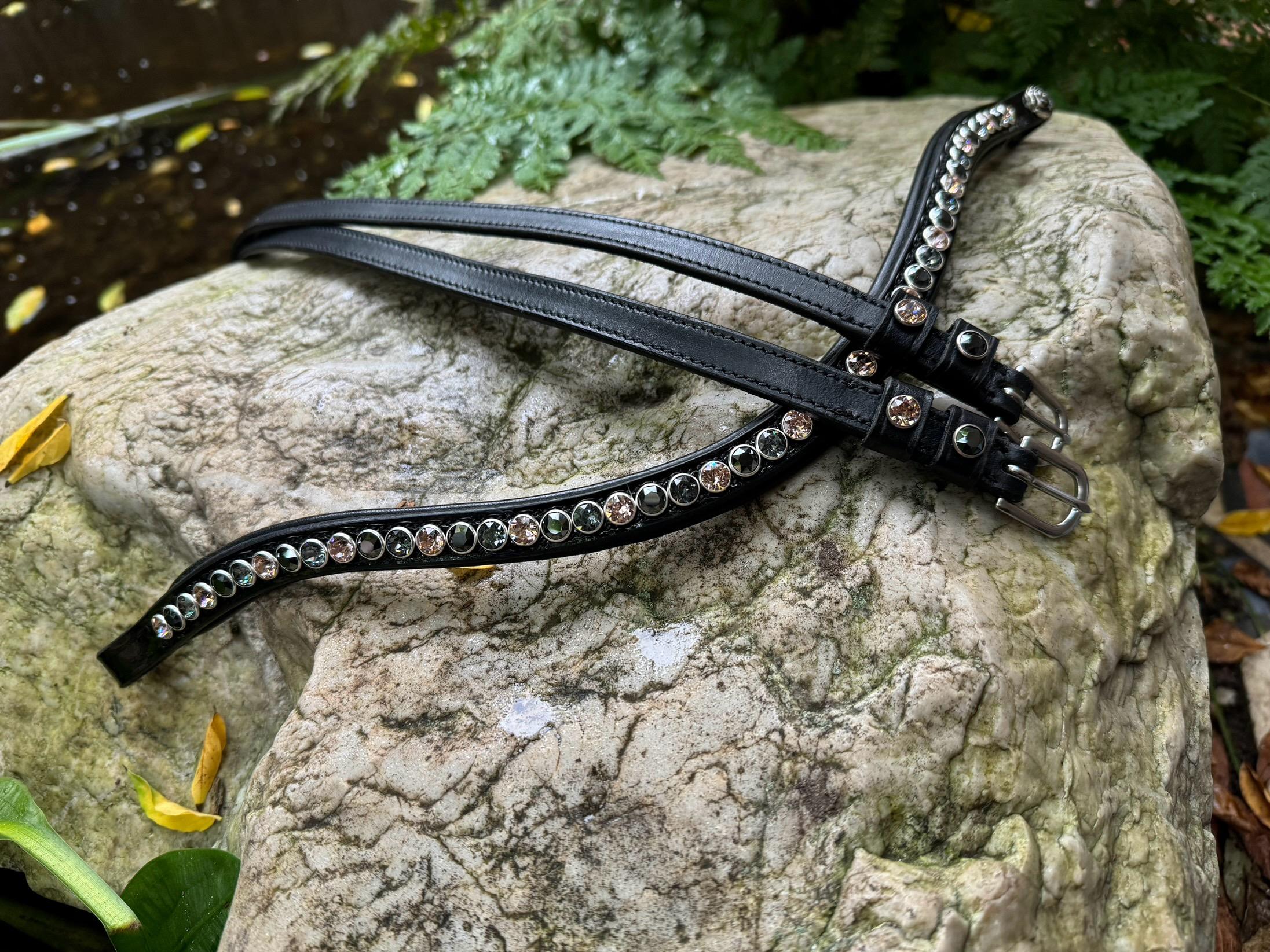 Frontriem naar eigen wens samen te stellen. De frontriemen worden aan de achterzijde met leer afgewerkt, dit wordt ervaren als extra draagcomfort voor je paard! Ook makkelijk schoon te houden: Verwijder na gebruik het zweet en haartjes gemakkelijk met een vochtige doek.